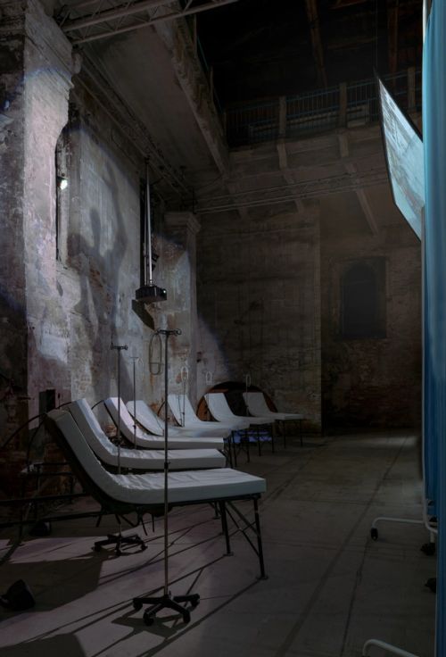 The Hospital of the Future was presented at the 17th Venice Architecture Biennale in 2021. The installation included a film of the same title, which was first shown at Matadero Madrid in 2020, as part of the exhibition Twelve Cautionary Urban Tales. Developed in the context of a broader research project at OMA, the installation and film examine how the typology of the hospital might evolve in response to shifting demands in healthcare, technology and society—especially under the pressure of crisis.