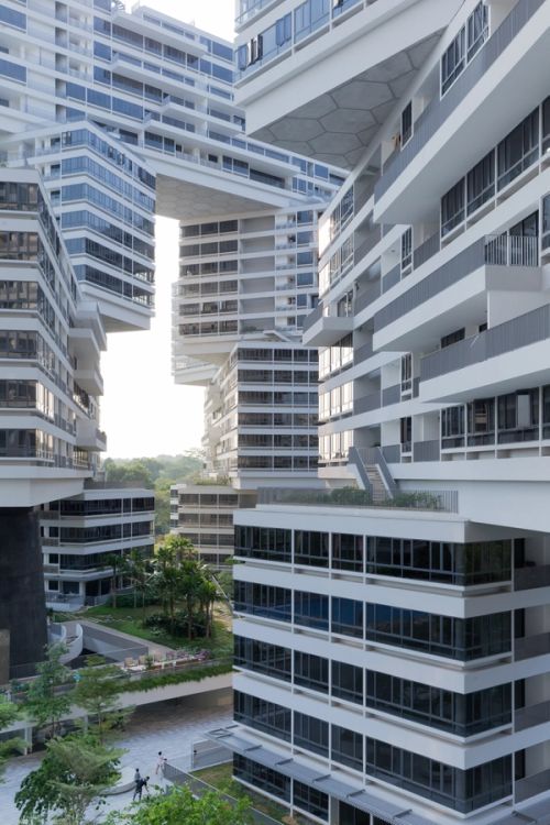 The Interlace, one of the largest and most ambitious residential developments in Singapore, presents a radically new approach to contemporary living in a tropical environment. Instead of creating a cluster of isolated, vertical towers – the default typology of residential developments in Singapore – the design proposes an intricate network of living and social spaces integrated with the natural environment.