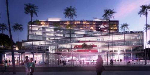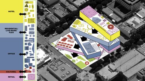 OMA's ambition was to contribute to Santa Monica's diverse network of public spaces, from the recreational plazas at the Pier and Palisades Park to contained commercial centers like Third Street Promenade and Santa Monica Place. Our design provides residents, tourists, and entrepreneurs a dynamic new public realm - a stepped building that achieves a strong interaction between interior program and exterior environments.