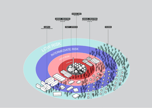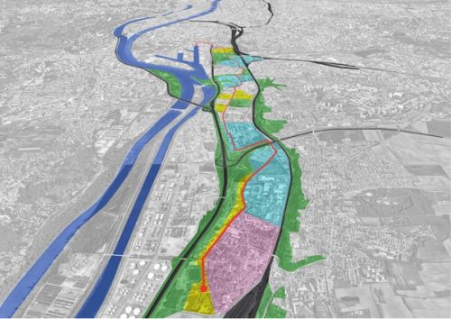 La Vallée de la Chimie is one of the biggest chemical and petrochemical parks in Europe, located on the outskirts of Lyon, France. This territory is hosting heavy chemical industry, logistic company, smeared from the port Hedouard Heriot towards the south, along the Rhone, stretching on approximately 17 kilometers. With more than 1,000 companies, six research and development centers and 20,000 jobs concentrated on 800 hectares, la Vallée de la Chimie encompasses all contemporary challenges related with urban renewal. The historical conditions that once allowed it to flourish, now isolate it from the rest of the city and hamper its development.