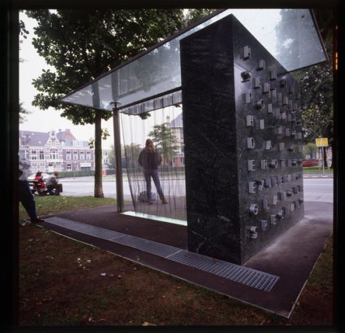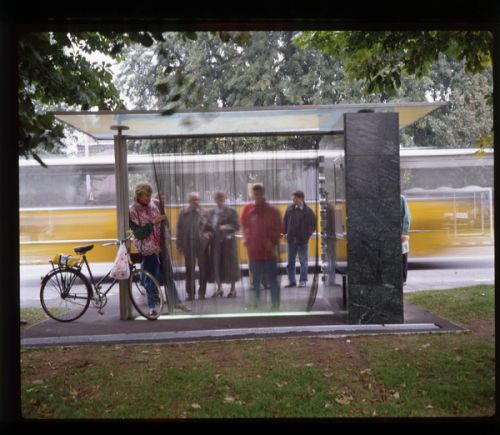 The Video Bus Stop is conceived as a screening pavilion. It was part of the exhibition 'What A wonderful World' that took place in Groningen in 1991; one of the five pavilions that were created during the exhibition and were scattered around the city of Groningen.