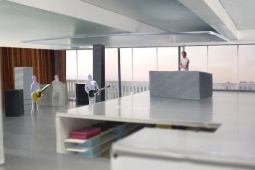 Vincent Gallo is a genuine polymath. He modeled for Calvin Klein; loves racing cars and motorbikes; he is a painter and writer and above all, an accomplished filmmaker and musician. For many years he has lived in the Sierra Tower apartments, one of the few residential high-rises in LA that offers an unobstructed panoramic view of the city. In 2005 the sole duplex apartment in the building, located on the 26th and 27th floor, was acquired by Vincent Gallo.