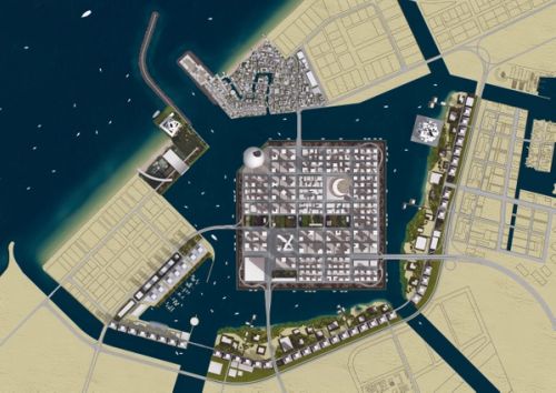 Waterfront City in Dubai is a masterplan of enormous scale and ambition, aiming to generate a critical mass of density and diversity in a city that has seen explosive growth in recent years but little cultivation of the street-level urban activity that most metropolises thrive on. The development consists of an artificial Island linked to four distinct neighbourhoods - Madinat Al Soor, the Boulevard, the Marina, and the Resorts - which together are twice the size of Hong Kong Island and yield a total floor space of 11.8 million m2 across various building types and programs. The masterplan takes an optimistic view of the future of urbanism and exploits two usually opposing elements of 21st century architecture: the generic and the iconic.