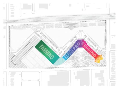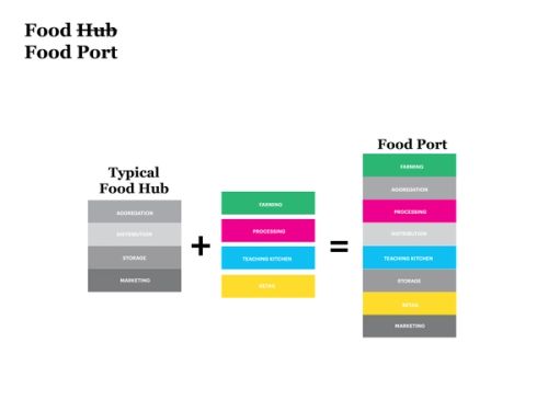 Food defines who we are and where we come from. Historically, the development of cities has been inextricably connected to its production, supply and distribution. But with the migration of rural communities to urban cities, the human population has become increasingly removed from sites of agricultural production and less aware of how their food is made. The direct relationship between producer and consumer is now separated by an everexpanding line of middle-man entities including distributors, processors and retailers. The local food movement demonstrates the individual and commercial consumer demand to change this relationship, but the scale of most local farms and their distribution networks makes it difficult for suppliers to meet growing demands. Food hubs have the potential to alleviate this bottleneck of inefficiency by consolidating supplies into shared facilities for local farmers and locating them strategically within cities.