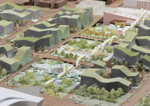 Yibin in China’s Sichuan province, where two river branches join with the Yangtze River, is historically known as the First City of Yangtze River. Currently with a population of around 800,000, the small city at the junction of two high-speed railways will be only one hour away from first-tier cities, including Chengdu, Chongqing, Kunming, and Guiyang. Yibin Essence Layers is a mixed-use development on an over 60-hectare site at Yibin’s new city center, in front of a new high-speed railway station backed by the Qixing Mountain.