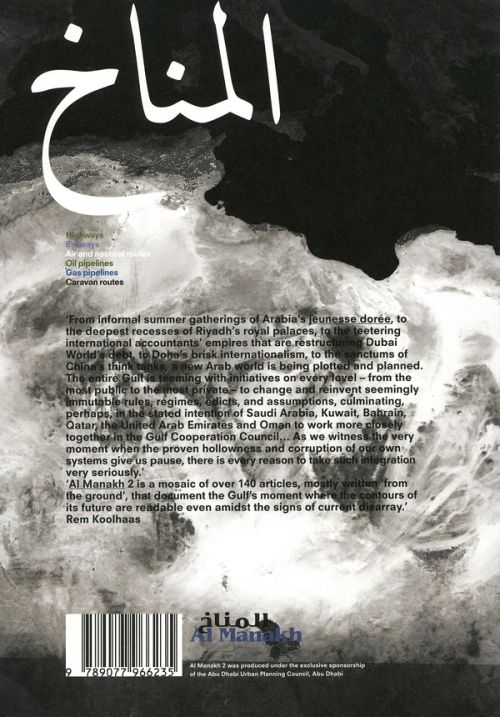 Al Manakh: Gulf Continued is a comprehensive guide to the cities of the Gulf, penetrating media clichés and delving deep into the new challenges facing the region in the wake of the financial crisis. Edited by Todd Reisz; produced by AMO, Archis, Pink Tank and the NAi.